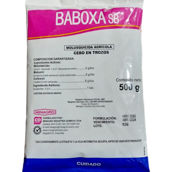 | Description | Utilizado en el crecimiento de la masa foliar, especialmente en los primeros estados de crecimiento del cultivo. Incrementa y potencializa la actividad fotosintética del cultivo. Contiene Cobalto elemento esencial en la producción de leche en el ganado v | DIMETRIN 80 WG, se recomienda realizar la aplicación dirigida en pos emergencia a la maleza en los cultivos de plátano, piña y Caña de Azúcar. | PIRESTAR 38 EC es un insecticida piretroide sintético de amplio espectro, con efecto residual. | BABOXA es un cebo molusquicida de triple acción, diseñado para controlar babosas y caracoles por ingestión y contacto. Su formulación permite el control eficiente de la plaga aún en condiciones adversas de humedad y luz solar. | LIMPIAMAIZ 500 SC, es un herbicida de acción graminicida de uso pre y post-emergente en el cultivo del maíz. Combate una amplia gama de malezas, tanto de hojas anchas como gramíneas, manteniendo los cultivos limpios durante varios meses. | |