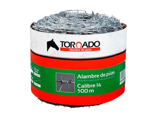 - Alambre de púas con recubrimiento en zinc, resistente y de fácil manejo.