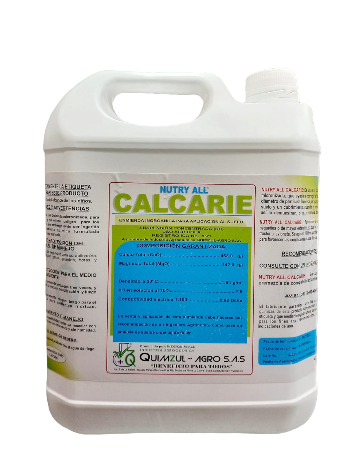 Nutry All Calcarie es una Cal Dolomita en forma líquida micronizada, que ayuda a corregir el pH del suelo, ya que su diámetro de partícula favorece para una rápida reacción con el suelo y un cubrimiento total.