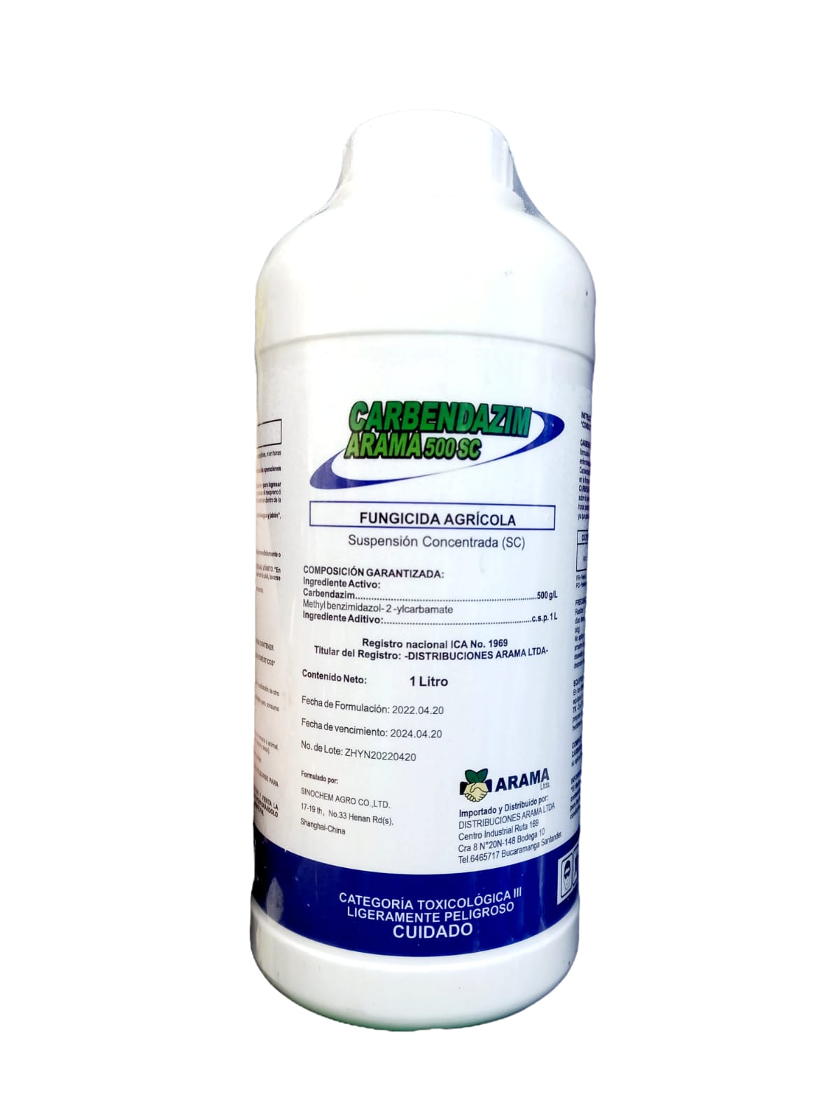 CARBENDAZIM ARAMA 500 SC es un fungicida de uso agricola, de tipo sistemico, formulado como suspensión concentrada.Es apto para el control de un amplio numero de enfermedades criptogramicas en numerosos cultivos.