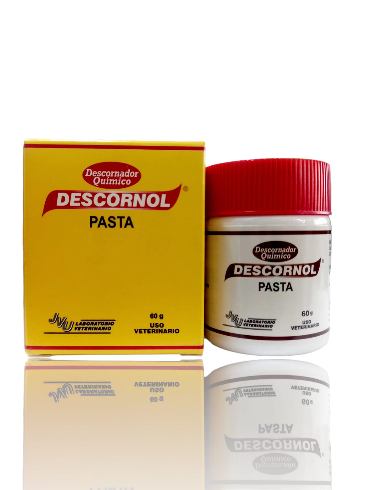 Descornador químico en pasta, utilizado para evitar el nacimiento de los cuernos en bovinos, caprinos y ovinos jóvenes.