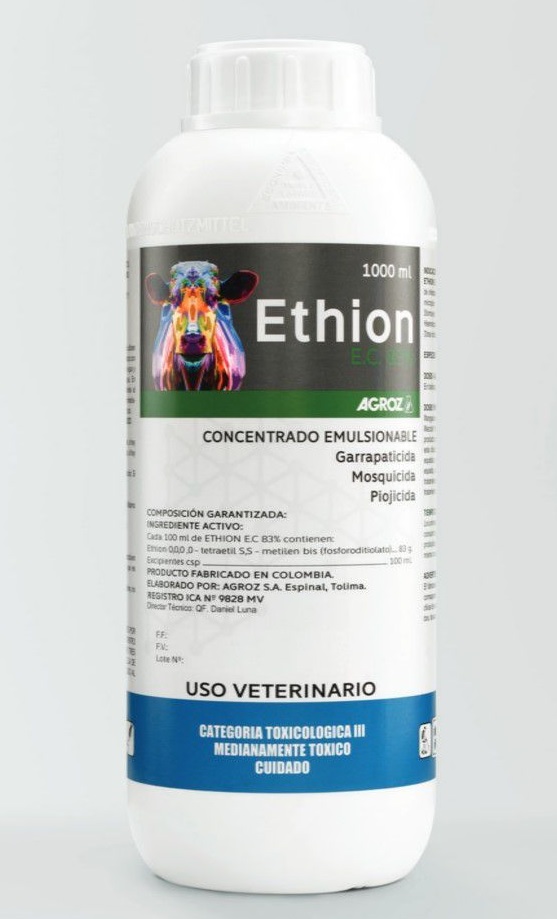 Solución garrapaticida, mosquicida de origen ORGANOFOSFORADO, cuya acción genera una hiperactividad nerviosa que termina con la muerte de los parásitos externos sobre los que actúa.