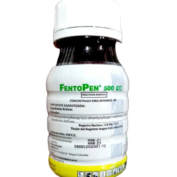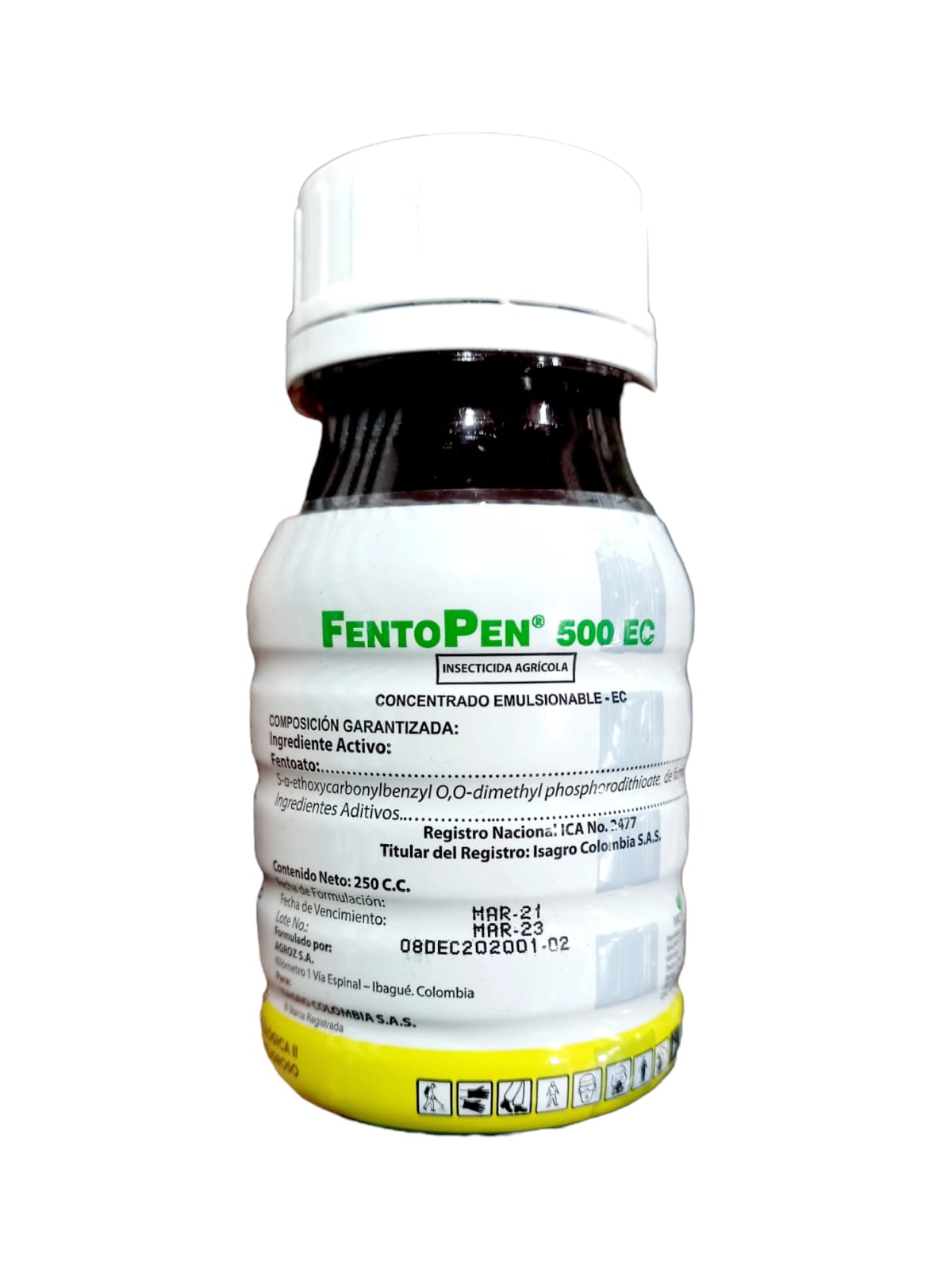 FENTOPEN 500 EC es un insecticida de ingrediente activo Fentoato, perteneciente al grupo químico de los organofosfatos (fosforotioato), cuya actividad biológica principal la ejerce por contacto e ingestión sobre un amplio rango de insectos masticadores y