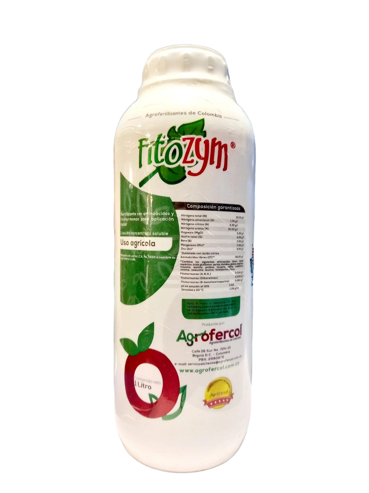 FITOZYM es un fertilizante foliar con aminoácidos libres y fitohormonas para aplicación foliar, formulado no solo para brindar nutrición, si no también para obtener el balance hormonal en la planta.