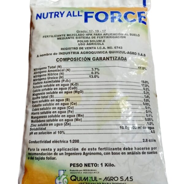 Fertilizante compuesto mezclado para aplicación mediante sistema de fertirriego o aplicación foliar. Su balance nutricional mineral permite ser utilizado en todos los estados fenológicos del cultivo y en diferentes cultivos. Contiene fitohormonas de creci