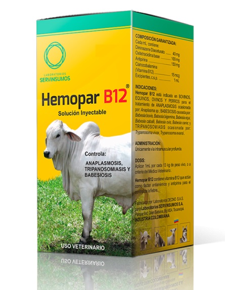 HEMOPARASITICIDA de AMPLIO ESPECTRO y ACCIÓN TOTAL. El más completo hemoparasiticida. Altamente eficaz contra Babesia, Anaplasma y Trypanosoma (Fiebre de garrapata, ranilla roja, ranilla blanca, renguera, secadera). Además controla la fiebre y estimula la