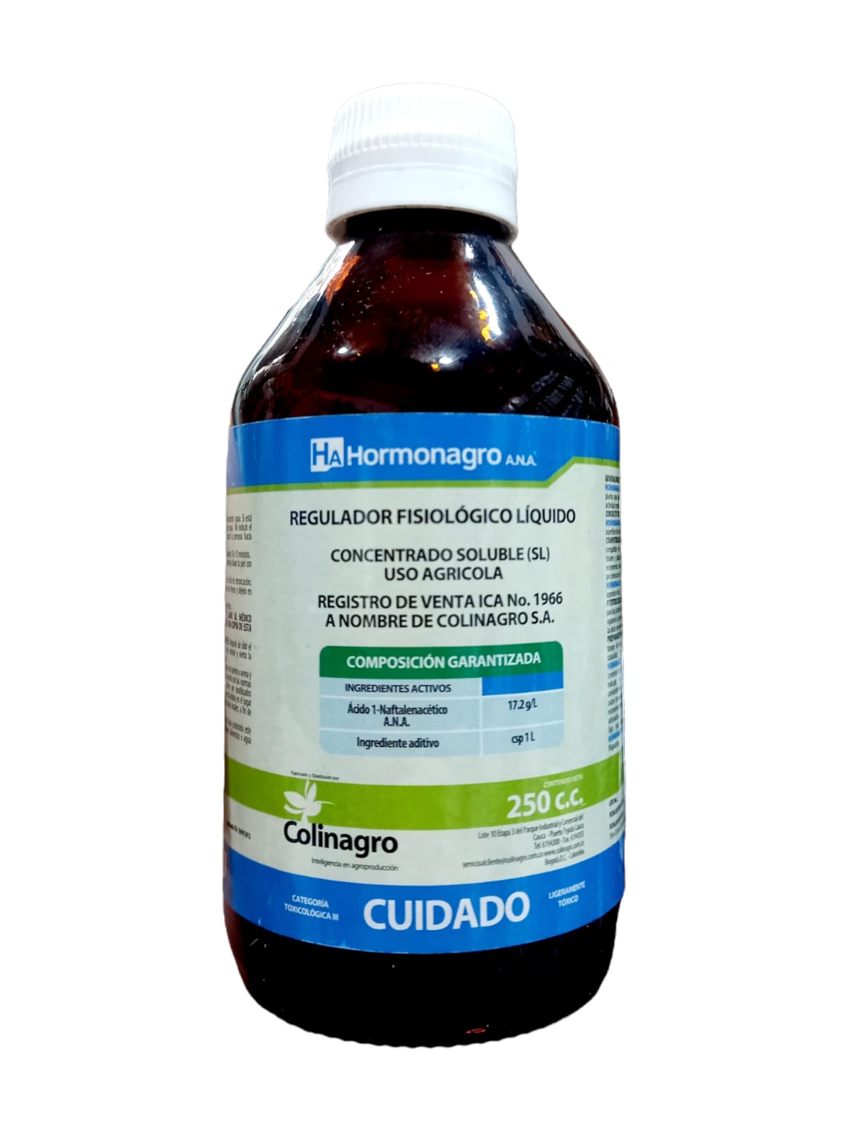 HORMONAGRO A.N.A es un regulador fisiologico de las plantas para aplicación foliar, que actua estimulando la actividad metabolica.