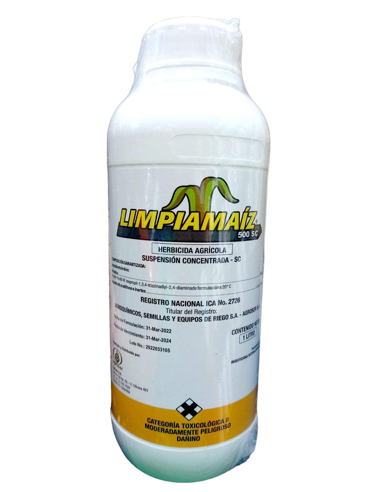 LIMPIAMAIZ 500 SC, es un herbicida de acción graminicida de uso pre y post-emergente en el cultivo del maíz. Combate una amplia gama de malezas, tanto de hojas anchas como gramíneas, manteniendo los cultivos limpios durante varios meses.