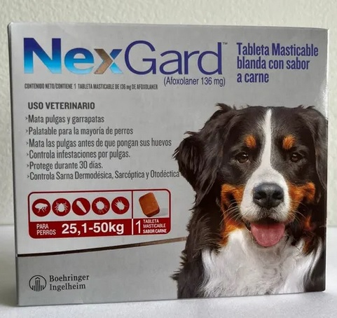 Es un antipulgas que protegerá a tu perro de contraer parásitos externos como pulgas y garrapatas cuyo efecto empezará actuar después de 30 minutos.Tiene un sabroso sabor a carne, lo cual facilitará el suministro, pues el perro lo comerá de forma voluntar