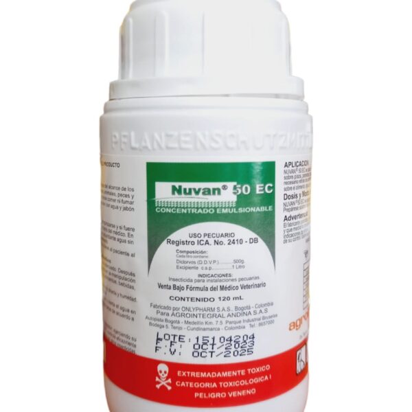 | Content | NUVAN® 50 EC está indicado para el control de: Cucarachas, chinches, ácaros, gorgojos, palomillas o polillas, moscas, mosquitos o zancudos, pulgas, hormigas, cucarrón negro y piojo. | |||||