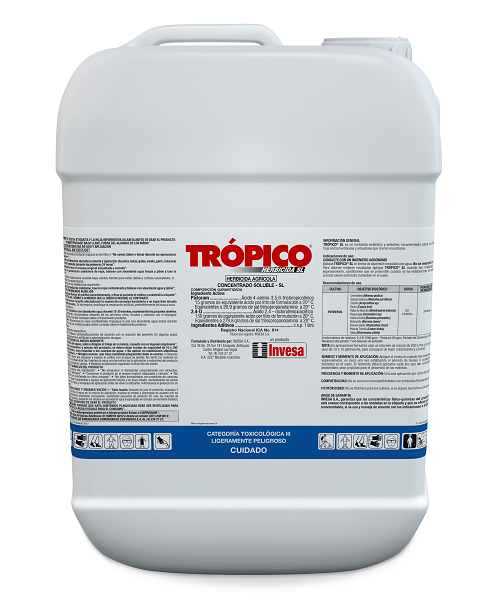 El herbicida Trópico es de acción sistémica y selectivo, Trópico es recomendado para controlar malezas de hoja ancha herbáceas y arbustivas que crecen en potreros.